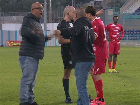 אבו אלעם ירד לדשא למרות שלא רשום בטופס המשחק, דרש מלייבוביץ' הסברים ולאחר שלא אהב אותם, דרש משחקני קבוצתו לרדת מכר הדשא. למזלם של האדומים, מרוואן קבהא הצליח להרגיע את בעלי קבוצתו, להחזיר אותו ליציע ולהרגיע את הרוחות, לפני שהמשחק חודש לדקות הסיום שלו.