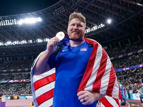 שלוש פעמים אלוף אולימפי, ריאן קרוזר, התגבר על פציעה במרפק וזכה במדלית הזהב בכדור ברזל עם הטלה של 22.34 מטרים. קרוזר העניק לאמריקאים זהב מספר 12 בדסיפלינה ב-16 אליפויות העולם האחרונות. אוזיאל מונוס המקסיקני לקח את הכסף עם 21.97 מטרים שמהווה שיא לאומי. לאונרדו פאברי לקח את הארד עם 21.94 מטרים.