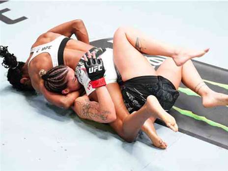 לצד עמידה טובה על הרגליים, היל סיפקה גם ירידות טובות לקרקע, עם טייקדאונס מול יריבתה. במהלך הסיבוב השני פיניירו הורידה את הראש שלה במטרה לנסות להגן מהמכות של היל, אך האחרונה תפסה את הברזילאית עם חניקת גיליוטינה, בדרך לניצחון יפה בהכנעה. צפו בקרב>>>
