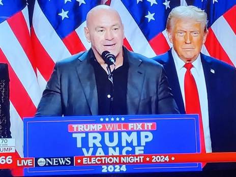 באחת התמונות הבודדות שנפוצו במהלך הלילה מאחוזתו של טראמפ במאר-א-לאגו, נראה הנשיא המיועד מסתודד עם שניים מהאנשים שהיו הקרובים אליו ביותר במערכת הבחירות האחרונה. בעלי טוויטר אילון מאסק, ונשיא ארגון ה-UFC, דנה וייט, כאשר השלושה, מבחינת לא מעט אמריקאים, מייצגים את ה"כח הגברי" שעמד מול קאמלה האריס. לאחר מכן, וייט אף עמד לצד טראמפ בנאום הניצחון שלו.