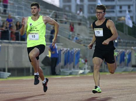 די כצפוי בריצה המקבילה לגברים ניצח אמרי פרסיאדו. הספרינטר אמנם היה רחוק משיאו של אלכס פורחמובסקי (10.20), אך קבע זמן יפה של 10.47 שניות. פרסיאדו גבר על ויטאלי קורז' האוקראיני (10.49). הישראלים אמיר חמידולין (10.64) ועמרי הרוש (10.67) השלימו את המקומות על הפודיום.