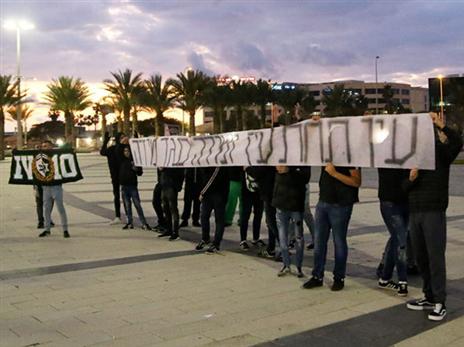 בקבוצה היו ערוכים למחאה עליה הכריז מראש ארגון "הקופים הירוקים", כשלבסוף כמות הקהל שהגיעה הייתה קטנה יותר, וכוחות משטרה ליוו את 150, שהפגינו מחוץ לאצטדיון. הקומץ הניף שלטים וקרא כנגד הבעלים, תחת הכיתוב: "עין תחת עין".