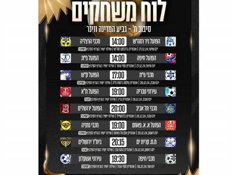במוקד: הפועל ב"ש תתארח אצל דימונה ביום חמישי ה-26.12. טבריה תשחק נגד הפועל ת"א בשבת ב-28.12 כמו גם מכבי ת"א מול הפועל ירושלים. קרית ים הקטנה תארח את בית"ר ביום ראשון ב-29.12, ואילו הסיבוב ינעל במפגש בין עירוני אשקלון מליגה ג' למכבי חיפה ב-30.12 בשני.