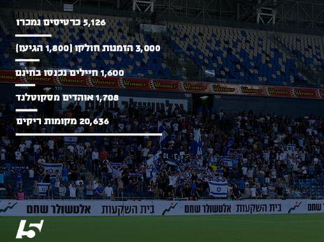 בסך הכל, 5,126 כרטיסים נרכשו על ידי האוהד הישראלי למשחק אמש. הסיבות לכך רבות: שעת המשחק המאוחרת והעובדה כי למחרת ישנו יום עבודה, האכזבות מהתוצאות האחרונות וגם מחירי הכרטיסים הגבוהים (95 עד 155 ש"ח) הובילו לכך שסמי עופר היה שומם מהרגיל.