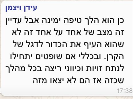 אז מה אתם אומרים, דקל קינן הורחק בצדק אמש ב-0:1 של מכבי תל אביב על מכבי חיפה? יממה לאחר סיום המשחק, ונראה שהדעות סביב החלטתו של דניאל בר נתן עדיין חלוקות, אפילו חלוקות מאוד. אבל לא רק בארץ מתכווחים על הנושא, גם מעבר לים - בקבוצת הוואטספ של הלגיונרים.