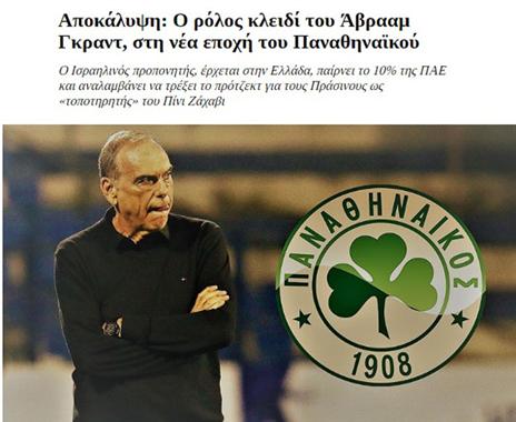 בדרך ליעד מפתיע? על פי דיווח ביוון, אברהם גרנט בדרך לפנאתינייקוס בתפקיד מנג'ר. בתחנת רדיו מקומית בבעלות בעלי הירוקים, יאניס אלפאוזוס, דווח שהקבוצה קרובה לעבור לבעלות איש העסקים פיירו פמבגונסד, שצפוי לרכוש את רוב זכויות הניהול על המועדון.