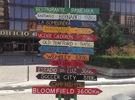 כדי לגרור סועדים ויושבים מכל העולם, במסעדה המדרידאית הציבו שלט בכניסה, עם רעיון נחמד במיוחד: המרחק מאותה מסעדה לאצטדיונים מפורסמים. בין היתר ניתן למצוא שם את המרחק מהמרקאנה (8,151 ק"מ), מוומבלי (1,261 ק"מ), מסן סירו (1,180 ק"מ) וגם - תאמינו או לא - מבלומפילד היפואי (3,600 ק"מ).