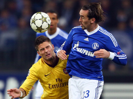 אחרי שהפסידו לגרמנים בלונדון, התותחנים עלו במצב רוח התקפי במיוחד. כבר בדקה ה-18 הבקיע תיאו וולקוט את הראשון ובדקה ה-26 דאג אוליבייה ז'ירו להכפיל את הפער בנגיחה, אחרי מסירת רוחב משמאל של לוקאס פודולסקי. דקתיים בתוך תוספת הזמן של המחצית הצליח קלאס-יאן הונטלאר לצמק והקאמבק הושלם אחרי ההפסקה. בדקה ה-67 חדר ג'פרסון פרפאן לאגף ימין בהתקפה ובעט כדור חזק, שפגע בתומאס ורמאלן ונכנס. 2:2 בגלזנקירשן, המירוץ לשמינית עדיין פתוח בבית 2.