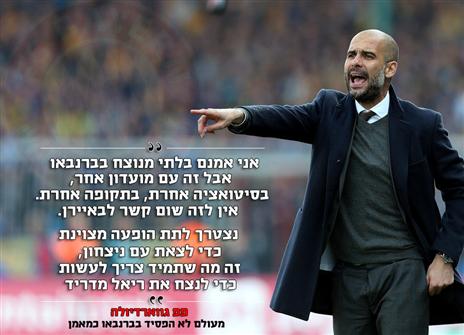 "אני שמח להיות בחצי הגמר", אמר פפ גווארדיולה, ששב למעמד חצי גמר ליגת האלופות אחרי הפוגה בת שנתיים, "אני מרוצה להיות שוב במדריד, זה דבר מיוחד עבורי ואני רוצה להשיג תוצאה טובה". אגב, פפ מעולם לא הפסיד בברנבאו עם בארסה אבל זה לא ממש מרגיע אותו. "הסטטיסטיקה הזו היתה עם מועדון אחר במקום אחר ובזמן אחר", אמר הספרדי, "נגד ריאל מדריד אתה תמיד חייב לשחק מצוין, אפילו יותר מזה".