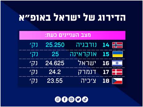16. ישראל 24.625 נקודות (נותרו 3 מ-4 נציגות)