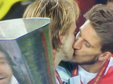 דבר אחד בטוח - תמונה אחת תישאר למזכרת מהזכיה הזו. בסביליה ובספרד מתמקדים בצילום אחד שכבר מעורר לא מעט הדים - צילום שבו נראים שני שחקני הקבוצה, ראקטיץ' וקאריסו, מתנשקים מיד אחרי הזכיה. האם ישנו איזה רומן שמתנהל בחדר ההלבשה של סביליה? נחכה להתפתחויות.