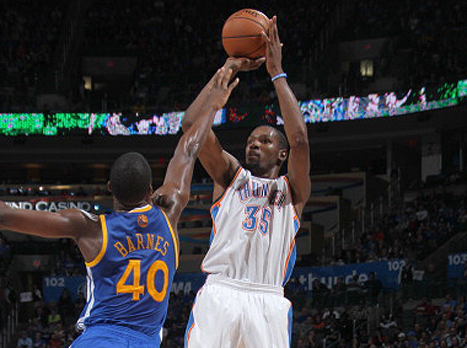 קווין דוראנט הוכיח בעונות האחרונות כי הוא יודע טוב מאוד לשים את הכדור בטבעת (3 פעמים מלך הסלים של הליגה), והעונה נדמה כי הוא החליט לקחת את המשחק שלו לשלב הבא. הפורוורד הפנטסטי סיפק טריפל דאבל ראשון בקריירה - 25 נקודות, 13 ריבאונדים ו-10 אסיסטים - וסגנית האלופה יצאה עם ניצחון קליל. את הקלעים הוביל ראסל ווסטברוק עם 30, כשקווין מרטין תרם 23 מהספסל. 22 נקודות של סטפן קארי בצד השני לא הספיקו.