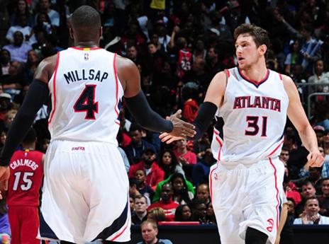 ההוקס הבטיחו את המקום הראשון במזרח ואת יתרון הביתיות עד הגמר בפעם השנייה בלבד בתולדות המועדון בתצוגה משכנעת מול קבוצת פלייאוף. הפ עשו זאת בעיקר בזכות הגנה נהדרת שעצרה את מיאמי על 39 אחוזים בלבד מהשדה ואת הכוכב של ההיט, דוויין ווייד, על 13 נקודות. דמאר קרול קלע 24 למנצחת ופול מילסאפ הוסיף 21 ו-9 ריבאונדים. לואול דנג סיים עם 17 ו-10 ריבאונדים למפסידה, שעלולה לאבד את המקום השביע ולפגוש את ההוקס בסיבוב הראשון בפלייאוף.