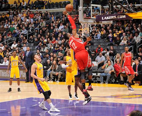 לא שזה קשה במיוחד לנצח את הלייקרס של העונה, אבל הרוקטס עשו את זה פעמיים בשישה ימים. הם פתחו עם 18:29 ברבע הראשון, לא פיגרו בשום שלב ורשמו ניצחון חמישי ברציפות על המקומיים בסטייפלס סנטר.