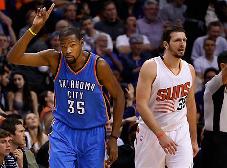 המאזן ההפוך של שתי הקבוצות מעיד כמובן גם על הרמה, וזה אכן לא כוחות כשהת'אנדר, פוטנציאל האיום האמיתי היחיד על גולדן סטייט וסן אנטוניו - שתי הקבוצות הטובות במערב - פוגשת את אחת החלשות בליגה. ועדיין, לאורחת לקח זמן "להרוג" את המשחק, והיא צריכה להגיד הרבה תודה לקווין דוראנט שהיה שם במאני טיים עם היד והרגליים הזריזות. KD סיים עם 32 נקודות ב-11 מ-21 מהשדה, כשהוא מוביל את אוקלהומה סיטי לרבע אחרון חזק של 21:33. ראסל ווסטברוק קלע 29 נקודות וחילק 8 אסיסטים, אבל גם נראה מפוזר לפרקים ואיבד 6 כדורים. 23 הנקודות של מרקיף מוריס לא מנעו מהסאנס הפסד שמיני ברציפות.