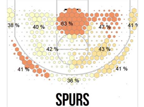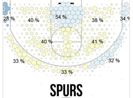 היעילות בפוסט מגיעה כמובן בזכות טים דאנקן ולמרכוס אולדריג', שחקנים שמיותר להזכיר. גם הספרס יעילים מעבר לקשת, בעיקר בזכות קוואי לנארד, שנתן קפיצה העונה ביעילות מהטווח הזה, ושחקנים נוספים (שאינם דני גרין).