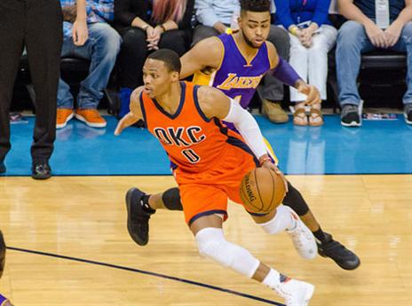 אז קווין דוראנט הצטיין, אבל בינתיים ראסל ווסטברוק מסתדר נהדר בלעדיו והלילה השיג עוד נתון סטטיסטי מרשים לרזומה. כוכב הת'אנדר השיג טריפל דאבל של 33 נקודות, 16 אסיסטים ו-12 ריבאונדים ונכנס לרשימה אקסלוסיבית שכוללת את מג'יק ג'ונסון, אוסקר רוברטסון וג'רי לוקאס כיחידים בתולדות הליגה עם 2 טריפל דאבלים ב-3 המשחקים הראשונים של העונה. הפעם ווסטברוק עשה זאת עם אחוזים סבירים יחסית מהשדה (11 מ-21) ונהנה גם מתמיכה של ויקטור אולדיפו, עם 20 נקודות, וסטיבן אדאמס (14). בצד השני השני דיאנג'לו ראסל וג'וליוס רנדל הובילו את החבורה מעיר המלאכים עם 20 נקודות כ"א, רק שבינתיים זה לא מספיק כדי לאותת שהעונה הנוכחית של הלייקרס תיראה טוב יותר.