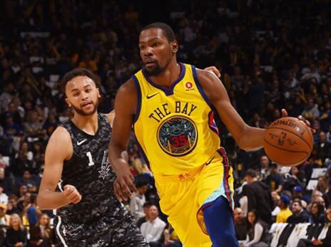 ניצחון ענק לווריירס, שאיבדו בפתיחה את סטף קרי וכבר היו בפיגור 8 בדקות הסיום, אך ידעו לעשות קאמבק בזכות הצגת על של קווין דוראנט ושוב התייצבו במרחק חצי משחק מיוסטון בצמרת המערב. זה התחיל רע מאוד עבור הווריירס, כאשר שתי דקות וחצי מהפתיחה קרי עיקם שוב את הקרסול במהלך חדירה אל הסל. הגארד קלע פעמיים מהקו ומיד לאחר מכן הוחלף וירד מדדה לחדר ההלבשה וכעבור כמה דקות גולדן סטייט הודיעה שהוא לא יחזור. למרות הפציעה, יכולת טובה של דוראנט וג'בייל מגי כבר העלתה את המארחים ל-23:34 ברבע השני, אבל הספרס חזרו וירדו להפסקה ביתרון ארבע, 46:50.