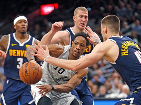 דמאר דרוזן (30 נקודות) ולמרכוס אולדרידג' (27) הובילו את הספרס לניצחון שמיני בעשרת המשחקים האחרונים ובכך להתקרב ליוסטון בראש הדירוג בבית הדרום מערבי. חואן הרננגומס קלע 27 עבור הנאגטס, שהפסידו בפעם השנייה ברציפות וירדו למקום השני במערב אחרי גולדן סטייט. לדנבר מאזן ביתי מעולה של 3:13, אבל בדרכים היא מתקשה ועומדת על 8:8.