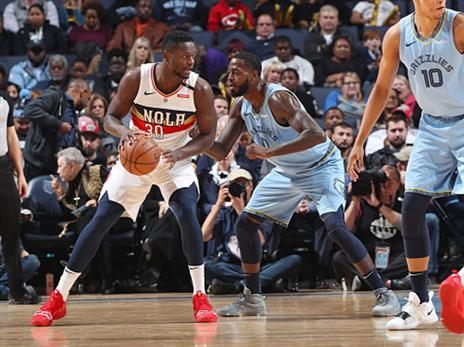 גם בלי אנתוני דייויס הפצוע, הפליקנס לא התקשו לנפנף מדרכם את ממפיס החלשה, שספגה הפסד שישי ברציפות אחרי עוד מחצית שנייה גרועה (35:51). ארבעה שחקנים הובילו את המנצחים: ג'רו הולידיי (שפגש את אחיו) עם 21 נקודות ו-11 ריבאונדים, ניקולה מירוטיץ' עם 21, ג'וליוס רנדל עם 20 ו-12 וג'אליל אוקפור עם 20 ו-10. מארק גאסול (22) ומייק קונלי (20) היו היחידים שתפקדו בממפיס. עומרי כספי החולה החמיץ את המשחק.