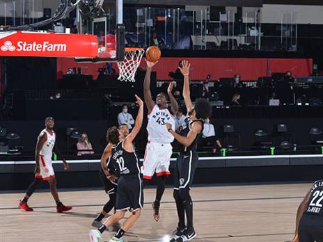 4:42 דקות לסיום הרבע השני, הראפטורס הובילו 35:68 (!) וגרמו לצעירים של ז'אק וון להיראות פשוט אומללים. אבל הנטס, שהפגינו אופי נהדר עד כה בבועה וניצחו שישה מתוך שמונת משחקיהם, הצליחו לחזור לעניינים עם ריצת 20:44. בשלהי הרבע השלישי ההפרש ירד עד ל-8 נקודות.