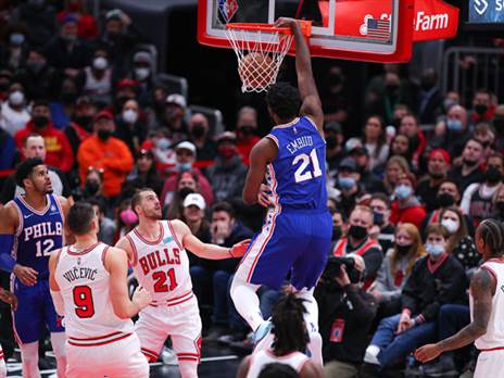 במשחק עצמו פילדלפיה פתחה טוב יותר ולאחר רבע ראשון בו תפסה את ההובלה בעזרת 26:34, הצליחה לשמור על ההפרש עד לסיום, על אף שהבולס נותרו צמודים עד לדקות ההכרעה. לצד אמביד, טוביאס האריס סיפק משחק טוב עם 23 נקודות, 8 ריבאונדים ו-5 אסיסטים, וביחד עם הסנטר האדיר הוביל לעבר הניצחון. בשורה התחתונה, פילדלפיה עלתה ל-21:32, והתקרבה לשיקגו, עם מאזן של 20:33 משלה.