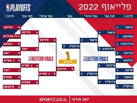 התמונה הושלמה לפנות בוקר (בין שישי לשבת) ועכשיו הכל מוכן לפתיחה הרשמית של הפלייאוף לעונת 2021/22 של ה-NBA. רגע לפני הג'אמפ בול הראשון, המסורת נמשכת ואנשי ערוץ הספורט מילאו את הבראקטים כל הדרך אל הגמר בתחילת יוני. איפה תעצור ברוקלין, מה תעשה דאלאס בלי לוקה דונצ'יץ' והאם יאניס אנטטוקומפו יצליח לעשות ריפיט? צפו בניחושים של מומחי הערוץ והצביעו: עם מי אתם מסכימים?