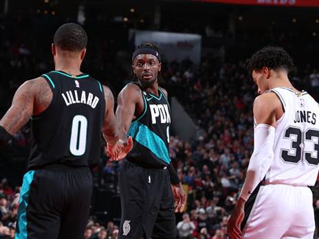 ג'רמי גרנט הוביל את קלעי המנצחת עם 29 נקודות, אנפרני סיימונס הוסיף 23 ודמיאן לילארד שתרם 22 נעץ שלשה גדולה מטר מאחורי הקשת שהגדילה את הפער ל-106:110 וסידרה למארחים מומנטום עד הסיום. אצל הספרס שנחלו הפסד שביעי בשמונה משחקים דווין ואסל וקלדון ג'ונסון הוסיפו 21 ו-20 נקודות בהתאמה.