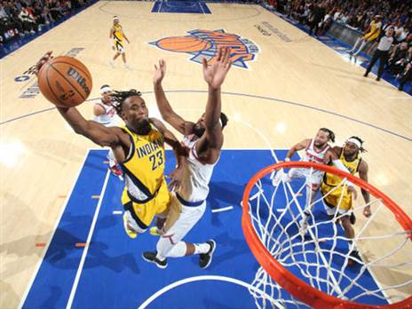 אינדיאנה אמנם הפסידה הבוקר (בין שני לשלישי) 121:117 לניו יורק ניקס והיא בפיגור 1:0 בסדרה, אך אחד מהרגעים הגדולים היה שייך דווקא לשחקן הפייסרס. אובי טופין, הפורוורד היהודי למי ששכח, סיפק דאנק מרהיב תוך כדי שהוא מעביר את הכדור בין הרגליים מול הקהל ההמום במדיסון סקוור גארדן.