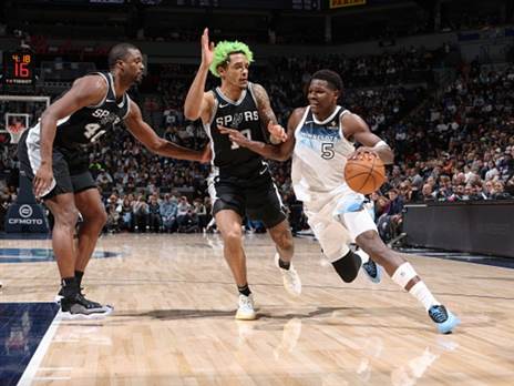 הטימברוולבס השמיטו יתרון 16 ברבע השלישי וכבר נקלעו לפיגור 8, אבל הצליחו בסופו של דבר לשמור על הניצחון אצלם. ויקטור וומבניאמה הוביל את הספרס עם 34 נקודות אבל החטיא קליעת עונשין מכריעה כ-18 שניות לסיום. מינסוטה נהנתה מערב מצוין של דונטה דיווינצ'נזו שקלע 26 נקודות כולל 5 שלשות, והשכיח ערב חלש במיוחד של אנתוני אדוורדס שסיים עם 14 נקודות ב-1 מ-9 מהשלוש.