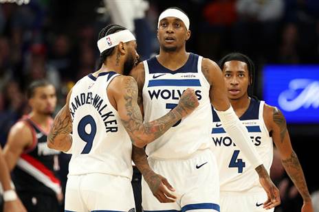 הטימברוולבס (23:30 במקום ה-6 במערב), שחסרו את אדוורדס, מייק קונלי, ג'וליוס רנדל ודונטה דיווינצ'נזו, ידעו להתעלות בסגל הקיים. ג'יידן מקדניאלס כיכב עם 30 נקודות ו-10 ריבאונדים, נאז ריד צלף 23 לצד 8 ריבאונדים, ניקיל אלכסנדר ווקר תרם 21 ורודי גובר הוסיף 15 ו-11 כדורים חוזרים.