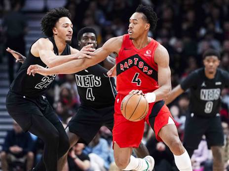 הישראלי, שפתח בחמישייה בפעם הרביעית ברציפות, קינח את עונת הבכורה שלו בליגה הטובה בעולם עם אחד המהלכים היפים שלו בקריירה. ברבע השני שרף הפיל את הסנטר האוסטרי של הראפטורס יאקוב פרטל עם "אנקל ברייקר" ענק, שהטריף את ספסל הנטס, בדרך ללייאפ ביד ימין.