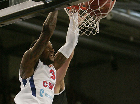 במשחק נטול הגנות בגרמניה, הרוסים אספו את הניצחון השביעי שלהם העונה וימשיכו במאבק על ראשות הבית מול ברצלונה, שתשחק מחר. שחקניו של אטורה מסינה שלטו במחצית הראשונה וירדו להפסקה ביתרון 39:50, הודות ליכולת טובה של מילוש תיאודוסיץ'. הרבע השלישי היה שייך לבוסטיאן נכבאר וחבריו מגרמניה, שהצליחו להקטין את התוצאה ל-60:58 בלבד, שתי דקות וחצי לסיום הרבע. פיליפ נוימן עוד הקטין ל-69:68 בפתיחת הרבע האחרון, אך כאן באמברג נעצרה. סוני ווימס ו-ויקטור חריאפה הקפיצו את צסק"א ל-72:79. בסיום 89:97 לאדומים ממוסקבה.