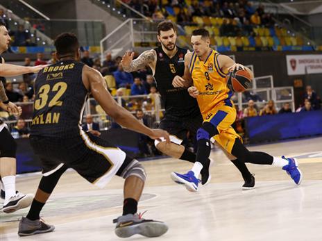 ריק פיטינו הצליח לעצור רצף של שלושה הפסדים עם תצוגת תכלית במגרש הביתי. היוונים פתחו פער קטן ברבע הראשון, והצליחו לברוח ל-38:57 בתוך הרבע השלישי. ריצת 0:10 של הטורקים בהנהגת וסיליה מיצ'יץ' עזרה להם לצמק ל-63:61 בלבד, אבל ניק קלאתס יצא לריצה פרטית של 0:7 ודאג גם להדוף כל ניסיון קאמבק אורח עד הסיום. היוונים משווים את המאזן שלהם לזה של מכבי ת"א במקום ה-10.