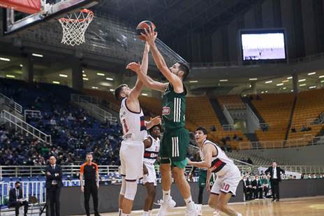 אחרי חמישה הפסדים רצופים, היוונים סוף סוף התאוששו על חשבון הבאסקים, שמצידם מחברים הפסד שלישי ברציפות. המשחק היה כולו במעמד צד אחד בלבד, וההפרש הלך ותפח עד שהגיע לשיא של 27 נקודות בתחילת הרבע האחרון, ומשם באסקוניה הצליחה לצמק מעט. נמניה נדוביץ' קלע 16 נקודות למנצחת, וג'רמי אוואנס הוסיף עוד 14. סטיבן אנוך התבלט בבאסקוניה עם 11 ו-11 ריבאונדים.