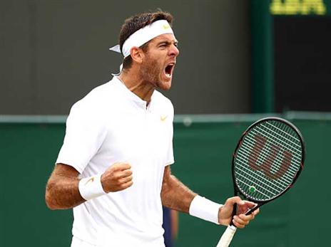 חואן מרטין דל פוטרו השלים היום (שלישי) את תמונת העולים לרבע גמר טורניר ווימבלדון בגברים, כשניצח 6:7 (1), 6:7 (5), 7:5, 6:7 (5) את ז'יל סימון (53 בעולם). הארגנטיני (4 בעולם) יתמודד מול המדורג הבכיר, רפאל נדאל. בנשים נערכו היום רבעי הגמר, כשבמוקד סרינה וויליאמס הצליחה להעפיל ל-4 האחרונות עם ניצחון על קאמילה ג'ורג'י. גם קרבר, אוסטפנקו וגורגס יהיה שם.