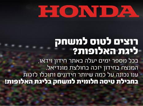 3.1 פרס ראשון: הזוכה שייבחר יזכה באירוח וטיסה (זוגי) למשחק כדורגל של ליגת האלופות האירופאית שלב הבתים, כולל כרטיסי כניסה למשחק (להלן: "הפרס הראשון"). מפרט האירוח ייבחר ע"י שיקול הדעת של "מאיר" חברה למכוניות ומשאיות בע"מ (להלן: "מאיר") יבואנית ומשווקת מכוניות "הונדה" בישראל.למען הסר ספק- מאיר תבחר את המשחק ואת יעד הטיסה על פי שיקול דעתה. האירוח כולל מלון בדרגת 3 כוכבים בהתאם לזמינות בתי המלון ביעד שייבחר.