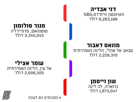 עומר אצילי ומונאס דאבור עברו לאיחוד האמירויות ושידרגו את השכר שלהם פי כמה מונים, כשגם ים מדר שיפר את שכרו בפנרבחצ'ה, אבל מי העשירייה הראשונה בישראל? הפרטים בפנים