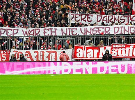ביציעי האליאנץ ארנה היה אפשר לראות שלט שעשוי להתפרש כביקורת של האוהדים נגד גווארדיולה. "פפ מעולם לא היה הקטע שלנו", נכתב בכרזה, שהיא בעצם תגובה לשלט שתלו אוהדי דארמשטאט בסיבוב הקודם. המילה 'פפ' בגרמנית היא כינוי לסם המרץ 'ספיד', והקהל של היריבה כתב "המריחואנה שלנו יותר טובה מהפפ שלכם". האם השלט של אוהדי באיירן היה רק תגובה או גם ביקורת מרומזת על ההחלטה של המאמן לעזוב בקיץ למנצ'סטר סיטי?