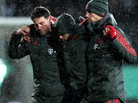 לג'רום בואטנג, מאטס הומלס, קינגסלי קומאן, קורנטן טוליסו, חאמס רודריגס ואריין רובן הצטרף אתמול גם תיאגו אלקנטרה, שספג מכה והוחלף בדקה ה-75. הקשר הספרדי יצא מהאצטדיון על קביים ונראה שהפגיעה בקרסול. מאוחר יותר אשרו בבאיירן כי מדובר בפגישה ברצועות וכי הוא ייעדר 4-6 שבועות.