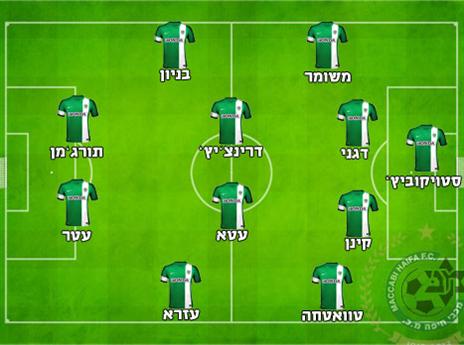 ההרכב המשוער: ולדימיר סטויקוביץ'; אייל משומר דקל קינן, אוראל דגני, טאלב טוואטחה (סאן מנחם); ניקולה דרינצ'יץ', ג'אבר עטא, חן עזרא (איסמעאיל ריאן), יוסי בניון; אלירן עטר, אלון תורג'מן.