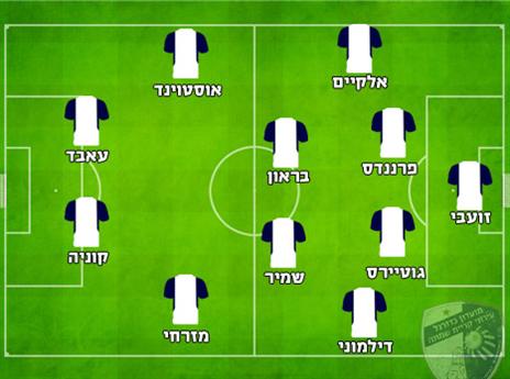 הרכב משוער: מהדי זועבי; עודד אלקיים, קאסיו פרננדס, לואיס גוטיירס, חן דילמוני; וובה בראון, עדן שמיר, אור אוסטוינד; אופיר מזרחי, אחמד עאבד, ברונו קוניה.