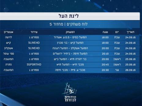 - ראשון ב-20:45, שידור ישיר ב-5SPORT ו-5SPORTHD: מכבי ת"א מול בית"ר ירושלים
