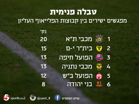 מכבי ת"א זו קבוצה שנוח לה לשחק נגד קבוצות שבאות לשחק כדורגל, שבאות להתמודד ראש בראש כדי לנצח, וזה מה שאמור להיות לה בפלייאוף העליון. מבין הקבוצות שבששת המקומות הראשונים, הצהובים צברו הכי הרבה נקודות במפגשי ראש בראש (20), אבל המאזן הזה לא ייתן להם כלום אם הם לא יביאו את הקילר אינסטינקט שלהם, שאמור להיות מיוצר כתוצאה ממה שקרה איתם בשנתיים האחרונות, אז הם ראו את הצלחת מונפת על ידי האדום של הדרום.