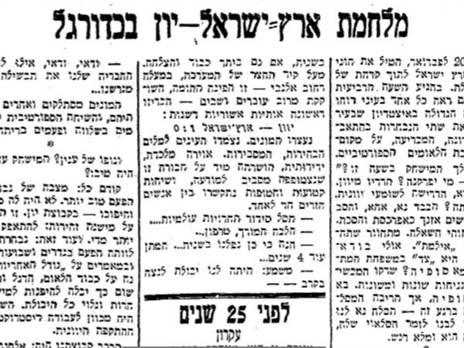 "יום א', 20 לפברואר, הטיל את חוגי הספורט בארץ ישראל לתוך קדחת של צפיה ותוחלת. בהגיע השעה הרביעית אחר הצהרים ראה כל אהד בעיני רוחו את התכונה הגדולה באיצטדיון שבעיר אתונא ואת שתי הנבחרות בהתאבקותן האחרונה, המכריעה, על מקום כבוד במערכת הלאומים הספורטיביים".