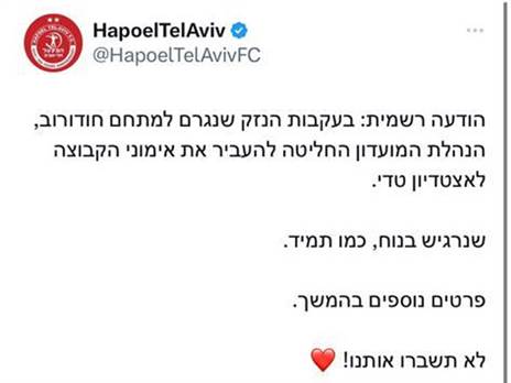 הקבוצה הודיעה: "בעקבות הנזק שנגרם למתחם חודורוב, הנהלת המועדון החליטה להעביר את אימוני הקבוצה לאצטדיון טדי. שנרגיש בנוח, כמו תמיד. פרטים נוספים בהמשך, לא תשברו אותנו!".