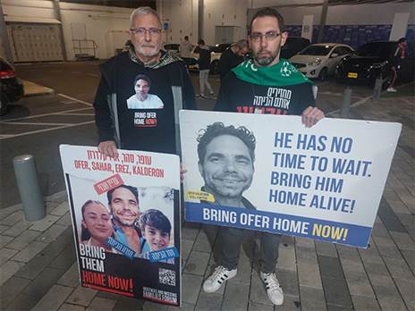 במקביל, למשחק בין מכבי חיפה להפועל תל אביב באצטדיון בלומפילד הגיעו שמי ואייל קלדרון עם שלטים שקוראים להשבת בן משפחתם, עופר קלדרון.