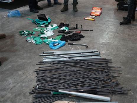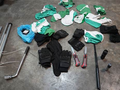 "89 חשודים הובאו לחקירה במרחב איילון, בעקבות תפיסת כמות גדולה של כלי תקיפה ואמצעים פירוטכניים. האמצעים שנתפסו אצל החשודים: 20 אבוקות וזיקוקים ימיים, כמאה מוטות ברזל בניין, אלות בייסבול ומתכת, סכינים יפניים, רעלות וכפפות".