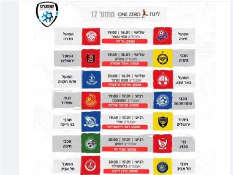 איגוד השופטים פרסם את שיבוץ השופטים למחזור ה-17 שיתקיים באמצע השבוע, כאשר במוקד הדרבי התל אביבי הגדול, בו מכבי תל אביב תארח את הפועל תל אביב ביום רביעי, בשעה 20:30. את המשחק ינהל עידן לייבה, כאשר ישפוט לראשונה באחד המשחקים הכי גדולים של הכדורגל הישראלי.