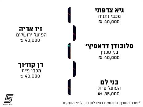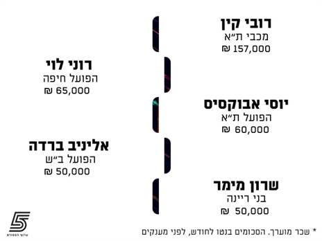 חיים סילבס אמנם סוגר את הרשימה, אך השכר שלו בעונה הבאה משתדרג מ-30 אלף ש"ח בחודש ל-40 אלף ש"ח בחודש, כך שהוא צפוי להשתדרג.